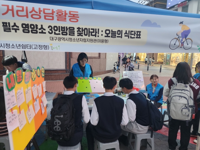 2025년 제5차 청소년 유관기관 연합 아웃리치 활동은 10월 15일(수) 동성로 ART SQUARE 에서 진행되었습니다. 이번 아웃리치는 '건강'이라는 주제로 진행하였으며 청소년자립지원관에서는 [필수 영양소 3인방을 찾아라! : 오늘의 식단표]를 진행했습니다. 음식모...