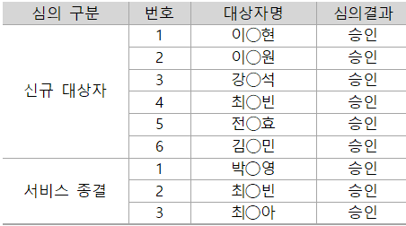 ㅇ 심의 대상자 명단 및 심의 결과